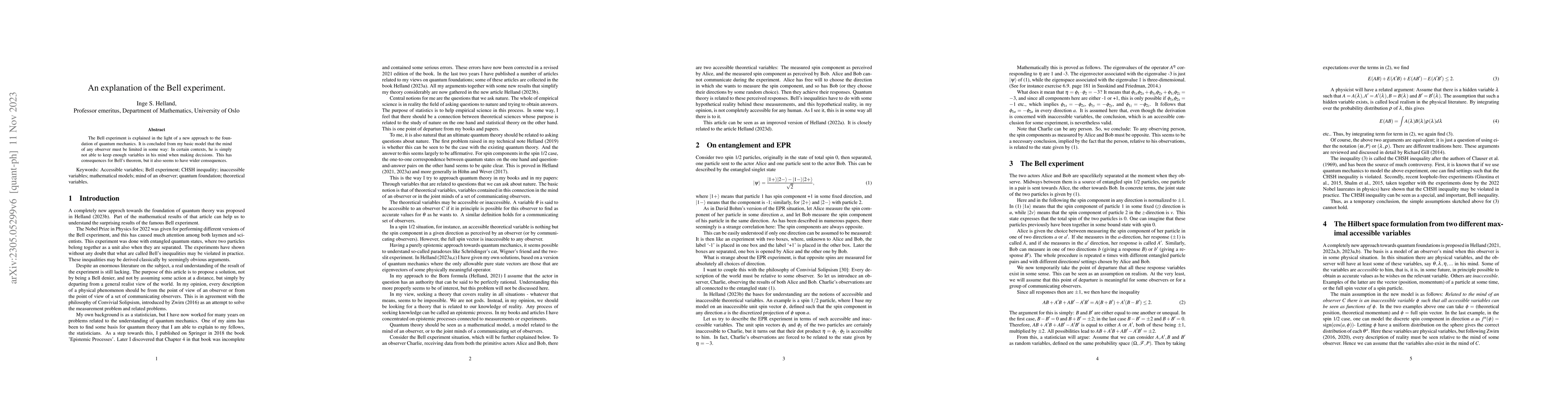 The Bell experiment is revisited using a new foundation for quantum mechanics, suggesting that observer limitations in cognitive capacity affect decision-making and have implications for Bell's theorem and broader contexts.