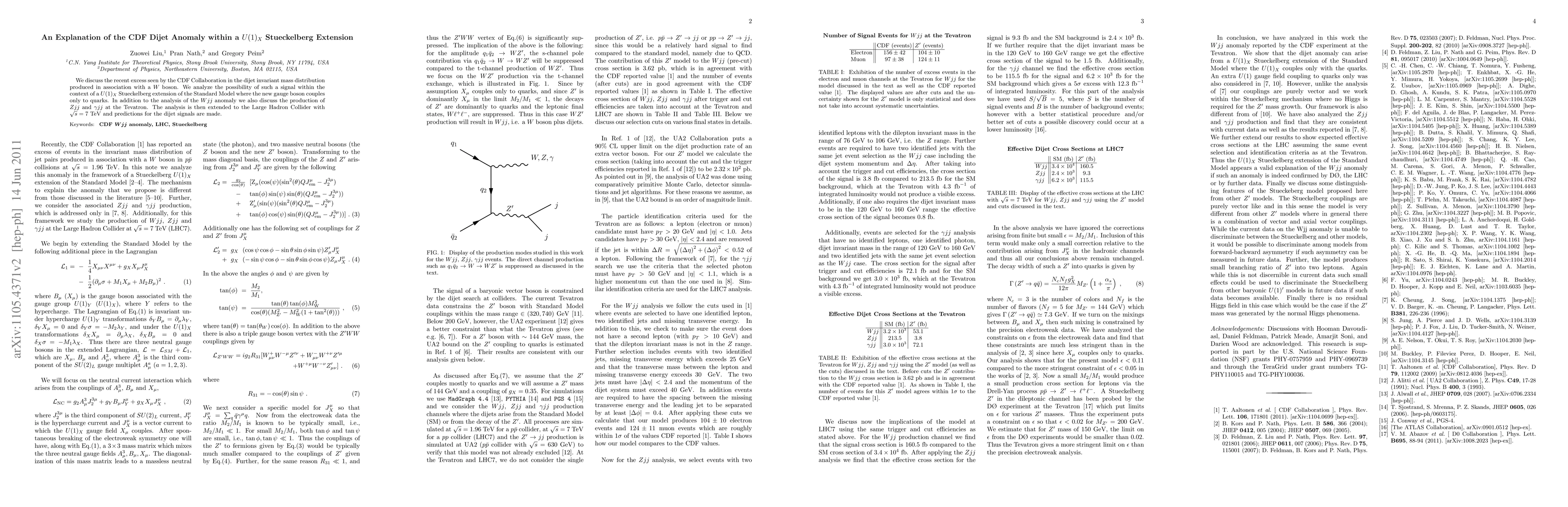 This paper explores the CDF Collaboration's observed excess in the dijet invariant mass distribution in association with a $W$ boson, proposing a $U(1)_X$ Stueckelberg extension of the Standard Model to explain this anomaly. The study also extends the analysis to $Zjj$ and $\gamma jj$ production at the Tevatron and predicts dijet signals at the LHC with 7 TeV energy.