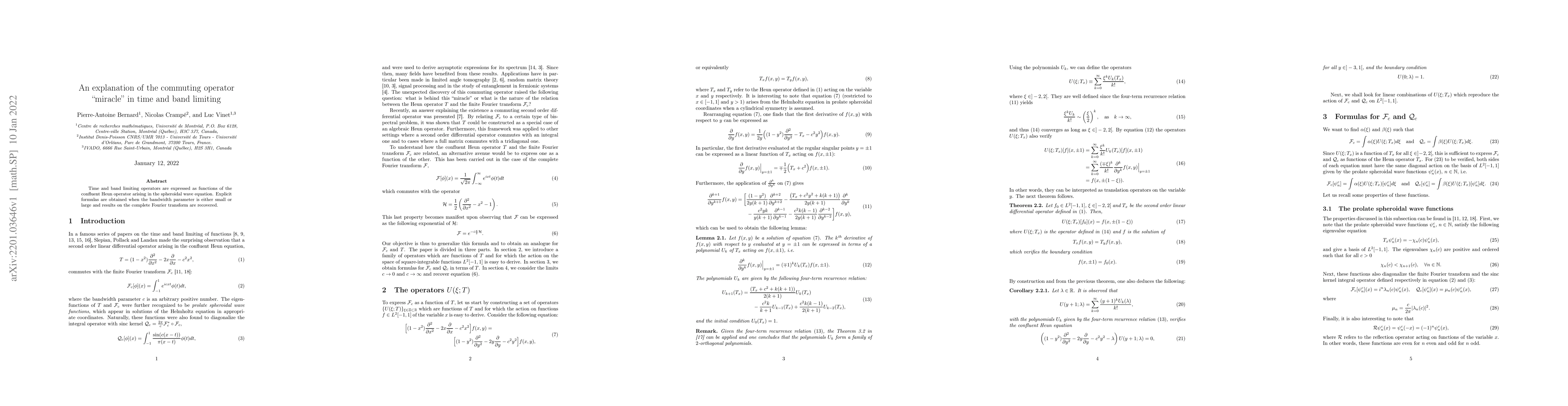 Time and band limiting operators are expressed as functions of the confluent Heun operator arising in the spheroidal wave equation. Explicit formulas are obtained when the bandwidth parameter is either small or large and results on the complete Fourier transform are recovered.