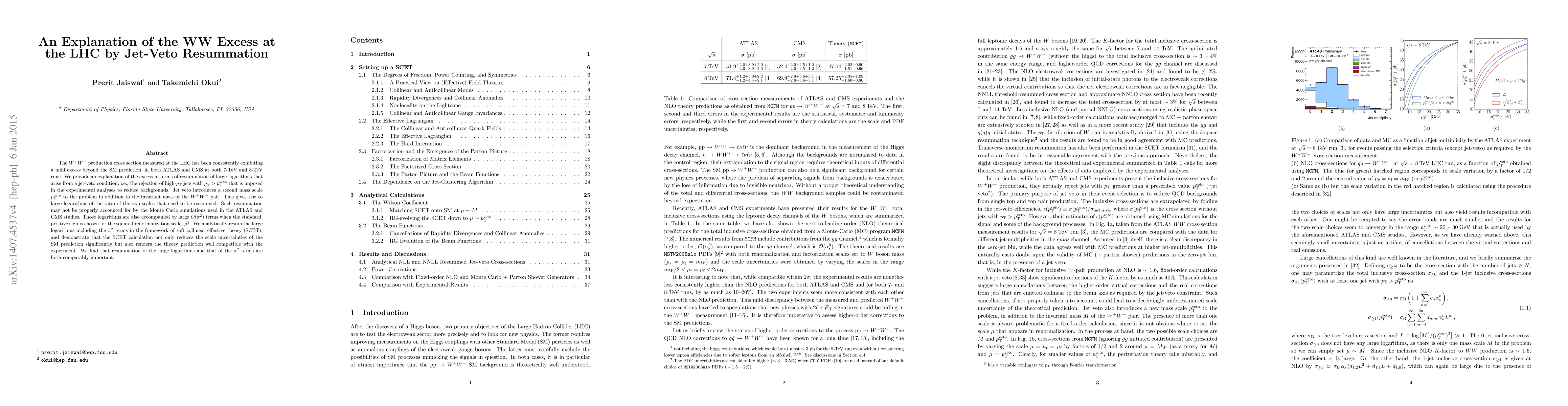 The LHC WW production excess is explained by resumming large logarithms from a jet veto condition using soft collinear effective theory (SCET), reducing scale uncertainties and making the SM prediction compatible with the experiment.
