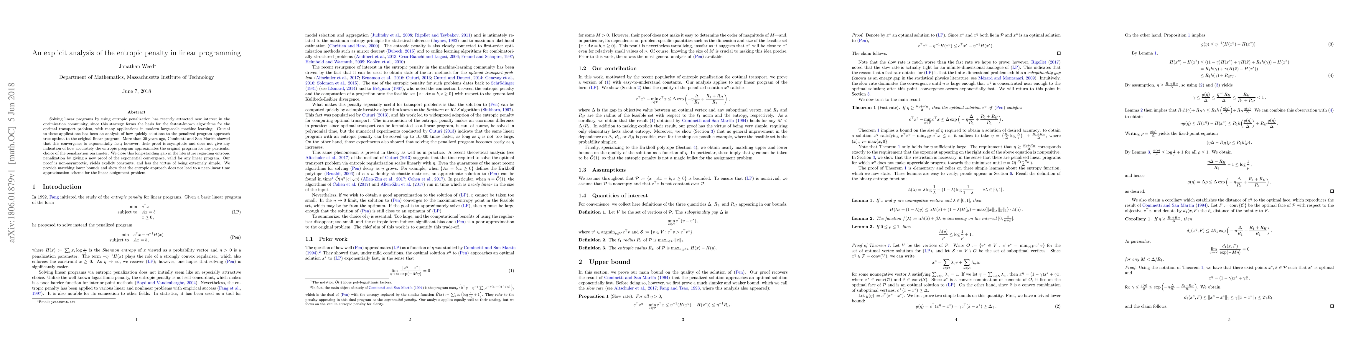 Solving linear programs by using entropic penalization has recently attracted new interest in the optimization community, since this strategy forms the basis for the fastest-known algorithms for the optimal transport problem, with many applications in modern large-scale machine learning. Crucial to these applications has been an analysis of how quickly solutions to the penalized program approach true optima to the original linear program. More than 20 years ago, Cominetti and San Mart\'in showed that this convergence is exponentially fast; however, their proof is asymptotic and does not give any indication of how accurately the entropic program approximates the original program for any particular choice of the penalization parameter. We close this long-standing gap in the literature regarding entropic penalization by giving a new proof of the exponential convergence, valid for any linear program. Our proof is non-asymptotic, yields explicit constants, and has the virtue of being extremely simple. We provide matching lower bounds and show that the entropic approach does not lead to a near-linear time approximation scheme for the linear assignment problem.