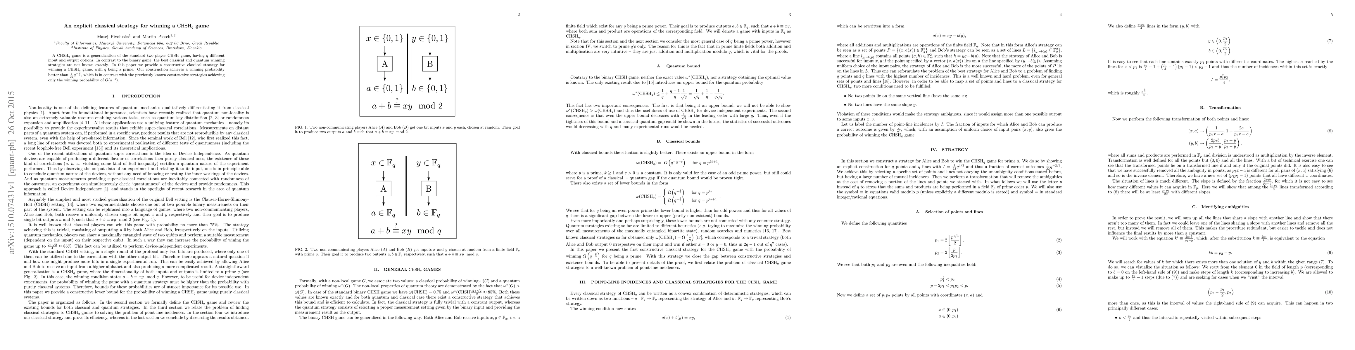 This paper presents a novel constructive classical strategy for winning a $\mathrm{CHSH}_{q}$ game with $q$ being a prime, achieving a winning probability better than $\frac{1}{22}q^{-\frac{2}{3}}$, surpassing previous strategies with a probability of $O(q^{-1})$.