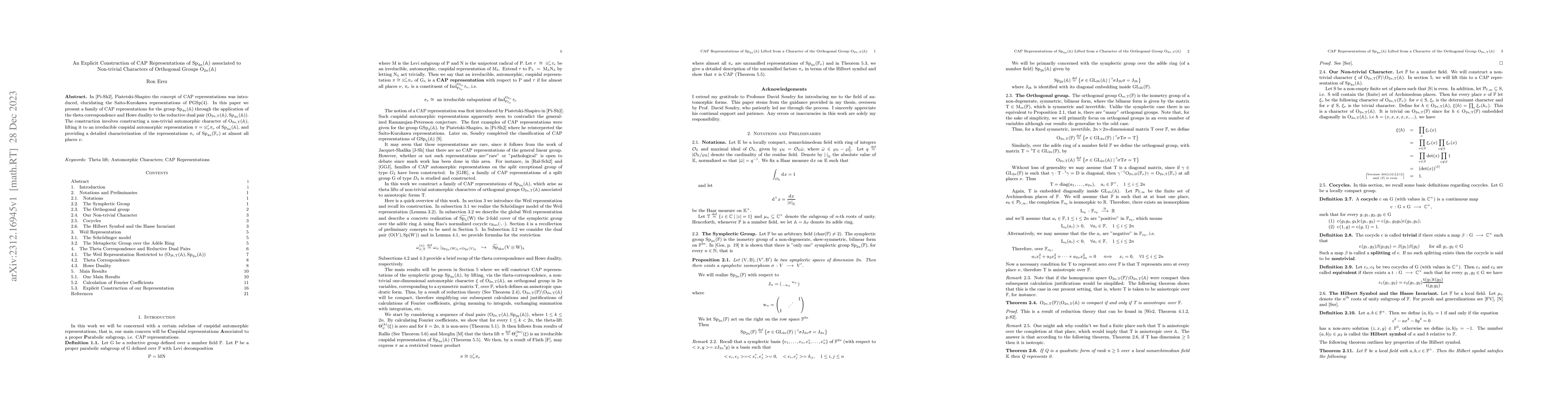 This paper introduces a family of CAP representations for $Sp_{4n}(\mathbb A)$ via theta correspondence and Howe duality applied to the dual pair $(O_{2n}(\mathbb A), Sp_{4n}(\mathbb A))$, constructing a non-trivial automorphic character of $O_{2n}(\mathbb A)$ and lifting it to $Sp_{4n}(\mathbb A)$. It provides detailed characterizations for $\pi_{\nu}$ at almost all places $\nu$.