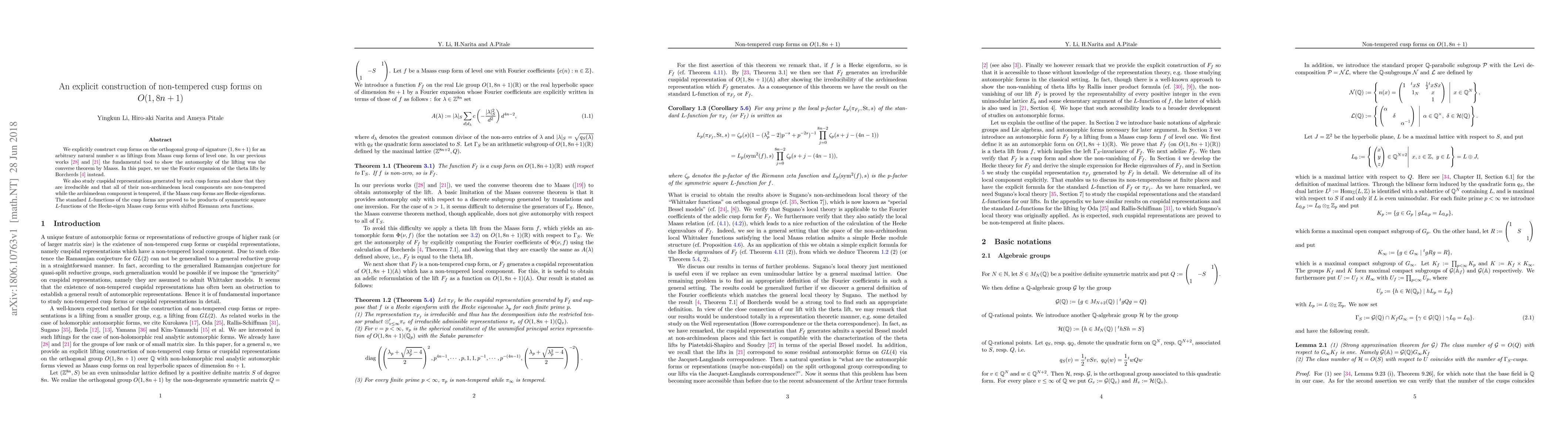This paper constructs explicit non-tempered cusp forms on the orthogonal group of signature $(1,8n+1)$ using Borcherds' theta lift method, as opposed to the converse theorem by Maass. It demonstrates that these cusp forms generate irreducible cuspidal representations with non-tempered local components and a tempered archimedean component when associated Maass cusp forms are Hecke eigenforms.