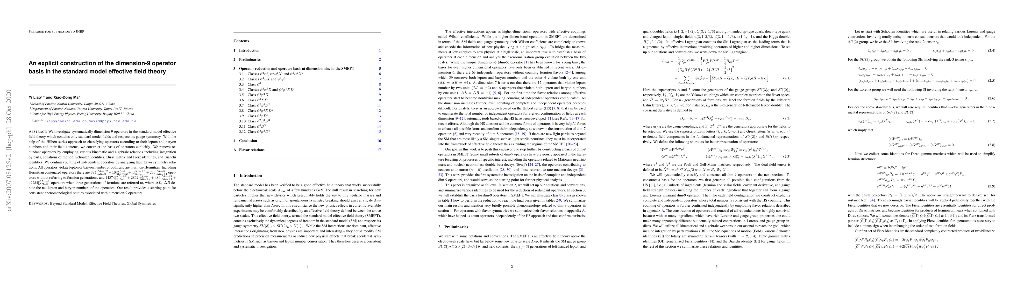 Researchers construct a basis of 384 dimension-9 operators in the standard model effective field theory without considering fermion generations, resulting in a total of 44874 operators when including three generations.