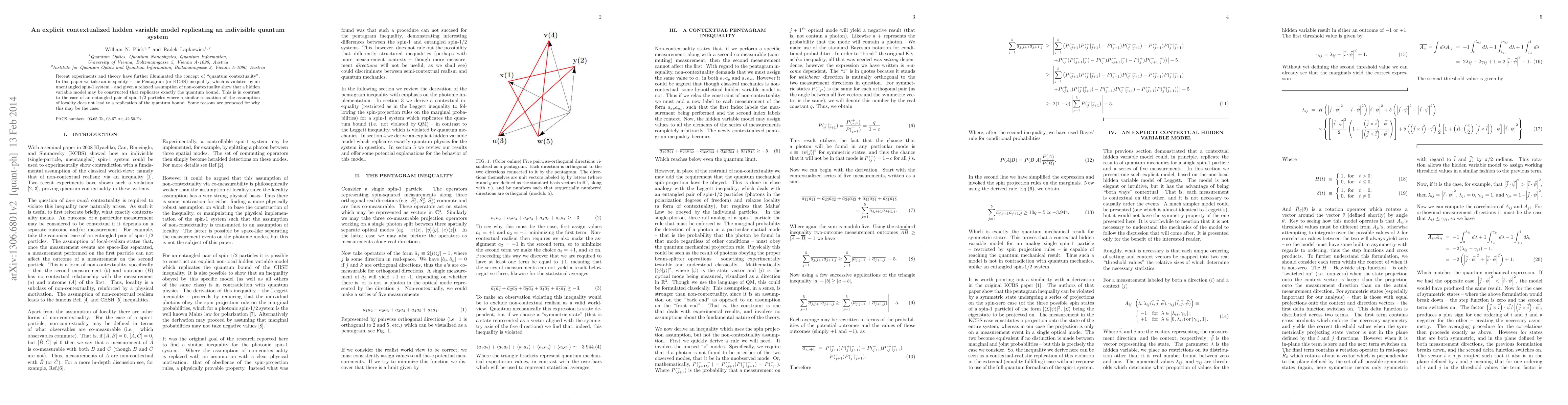 Researchers created a hidden variable model that replicates the quantum bound for an indivisible spin-1 system using the Pentagram inequality, contradicting non-contextuality assumptions.