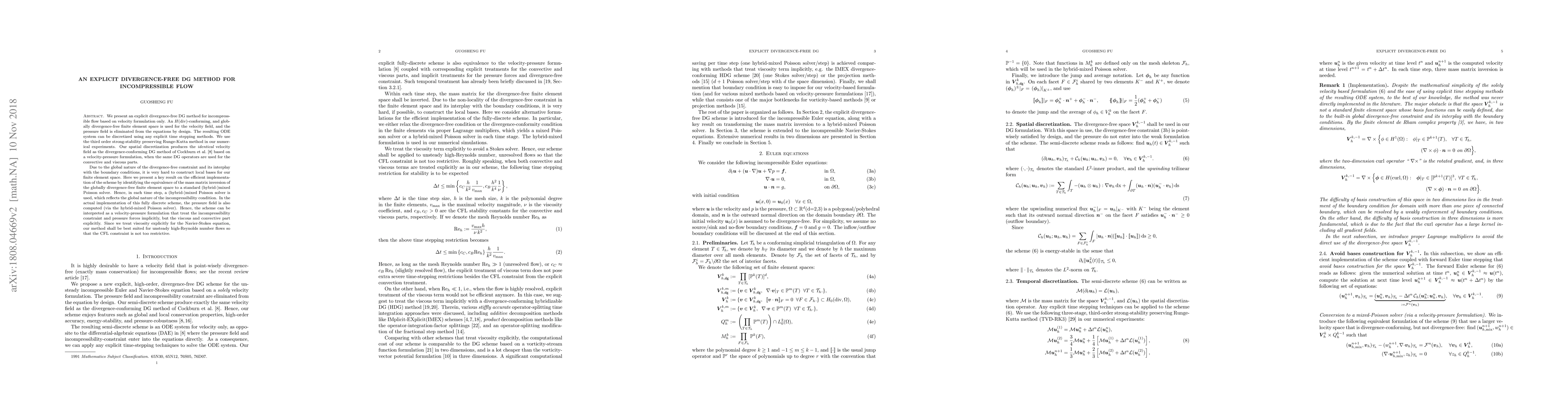 This paper introduces an explicit divergence-free discontinuous Galerkin (DG) method for incompressible flow based solely on velocity formulation. The method uses a globally divergence-free finite element space for velocity and eliminates pressure by design, allowing for explicit time integration. The method is efficient due to the equivalence of its mass matrix inversion to a hybrid-mixed Poisson solver, making it suitable for unsteady high-Reynolds number flows.