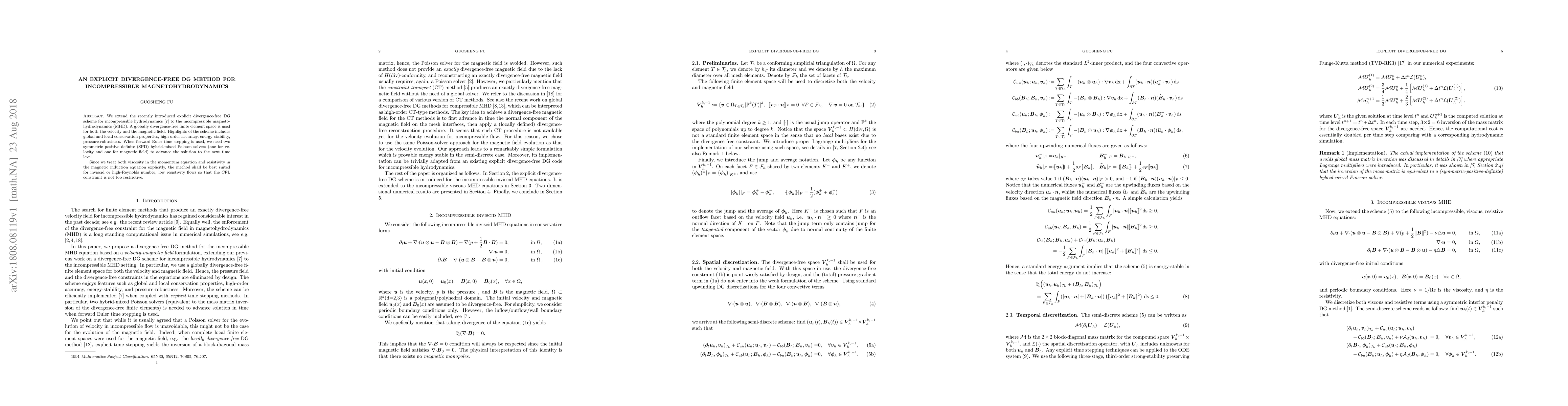 A DG scheme for incompressible MHD flow based on a velocity-magnetic field formulation is presented.