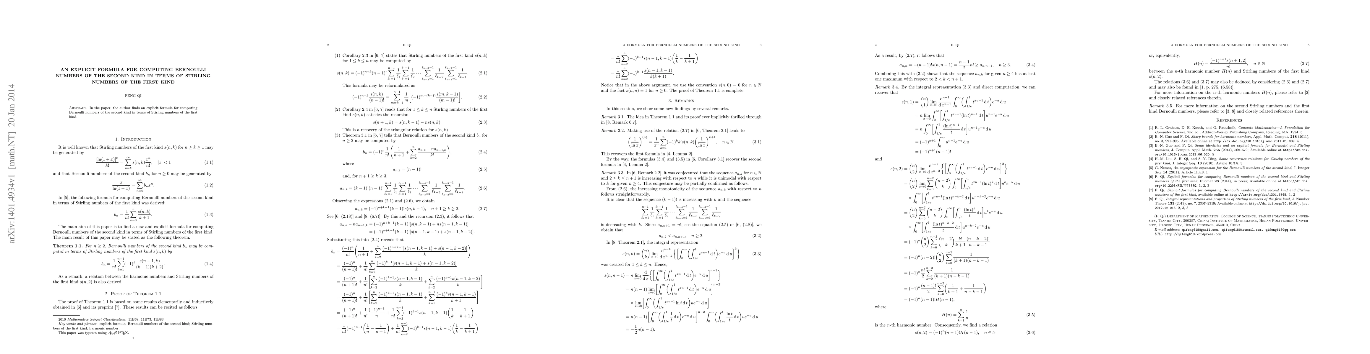 This paper presents an explicit formula that relates Bernoulli numbers of the second kind to Stirling numbers of the first kind, providing a new method for computing Bernoulli numbers. The formula leverages combinatorial identities to achieve this connection.