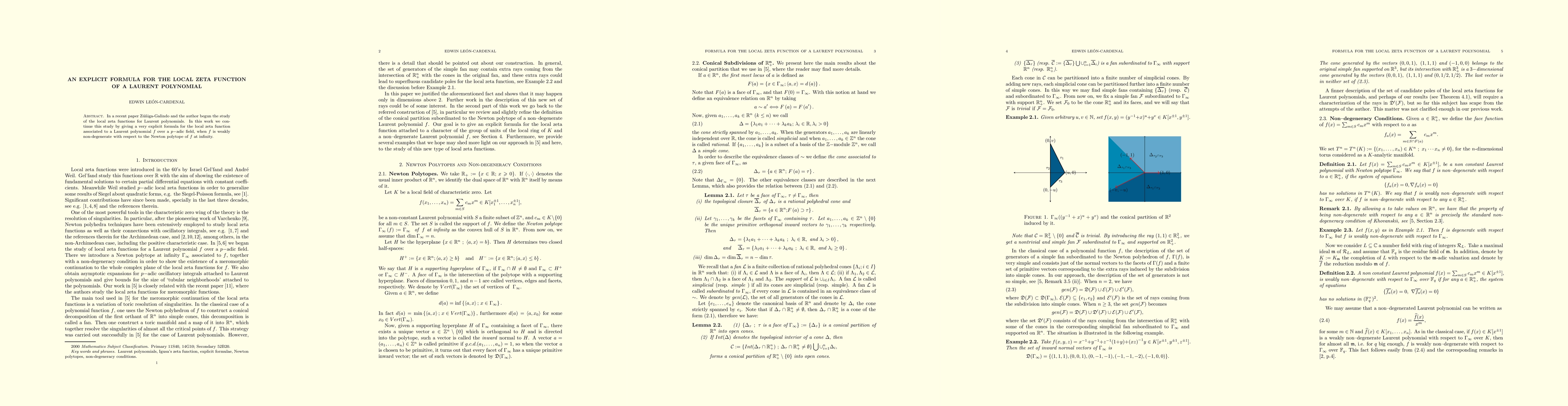 In a recent paper Z\'u\~niga-Galindo and the author begun the study of the local zeta functions for Laurent polynomials. In this work we continue this study by giving a very explicit formula for the local zeta function associated to a Laurent polynomial $f$ over a $p-$adic field, when $f$ is weakly non-degenerate with respect to the Newton polytope of $f$ at infinity.