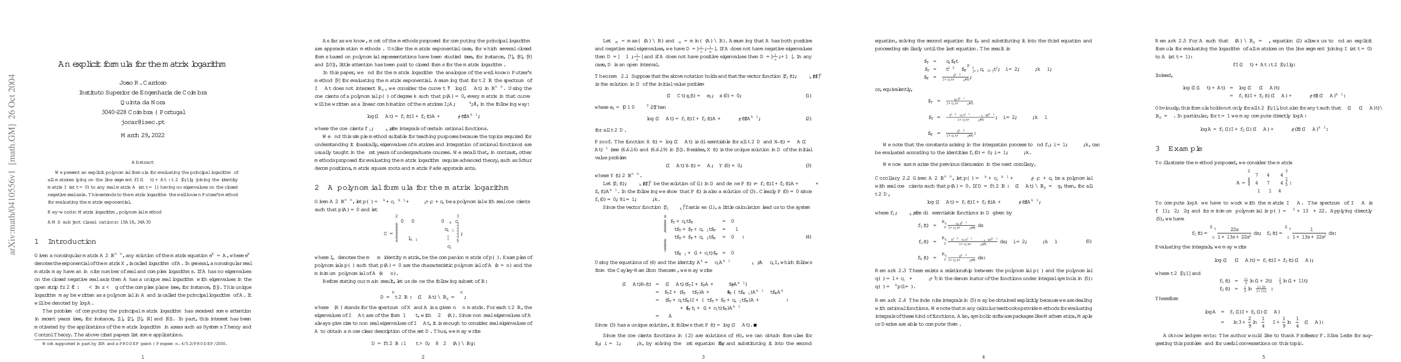 Researchers developed an explicit formula for calculating the matrix logarithm of matrices on a specific line segment, extending known methods for evaluating the matrix exponential.