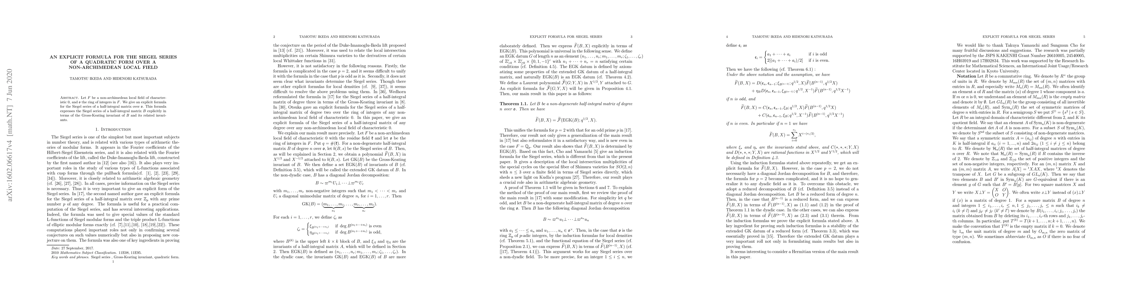 This paper provides an explicit formula for the Siegel series of a half-integral matrix over a non-archimedian local field, expressing it in terms of the Gross-Keating invariant and related invariants. The formula enhances the understanding of the series' structure in this context.