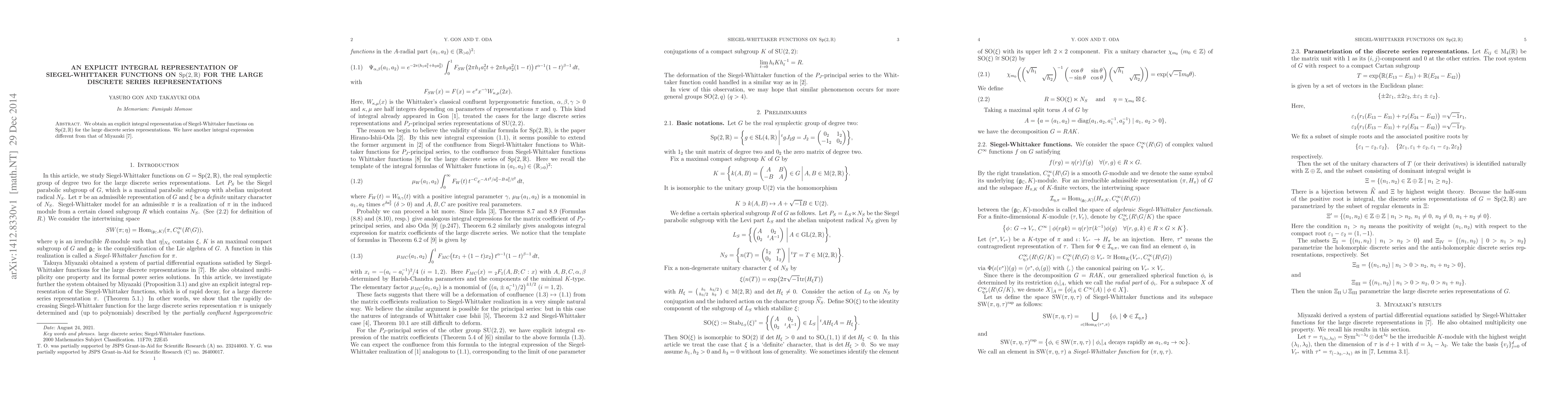 This paper presents an explicit integral representation of Siegel-Whittaker functions on Sp(2,R) for large discrete series representations, providing a distinct integral expression compared to Miyazaki's previous work.