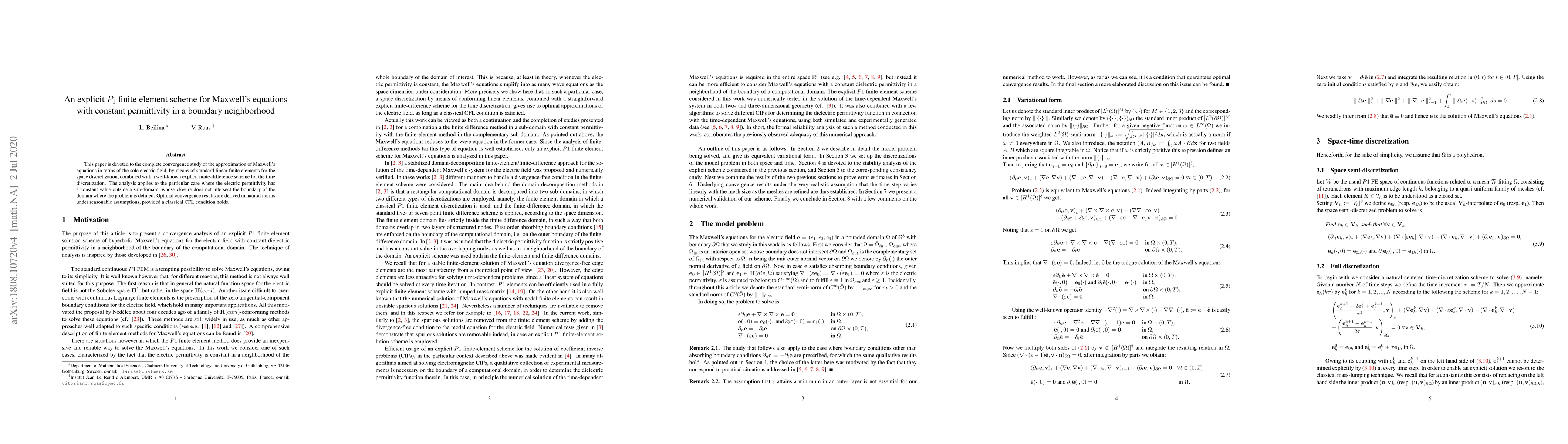 This paper is devoted to the complete convergence study of the finite-element approximation of Maxwell's equations in the case where the magnetic permeability is constant. Standard linear finite elements for the space discretization are combined with a well-known explicit finite-difference scheme for the time discretization. The analysis applies to the particular case where the dielectric permittivity has a constant value outside a sub-domain, whose closure does not intersect the boundary of the problem-definition domain. Optimal convergence results are established in natural norms under reasonable assumptions, provided a classical CFL condition holds. A numerical validation of the theoretical results is provided.