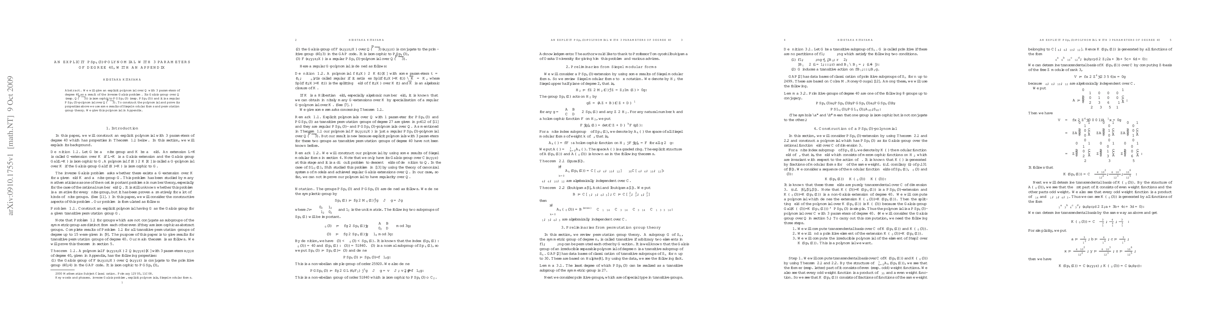We construct an explicit PSp_4(3)-polynomial with 3 parameters of degree 40 by using some results of Siegel modular forms.