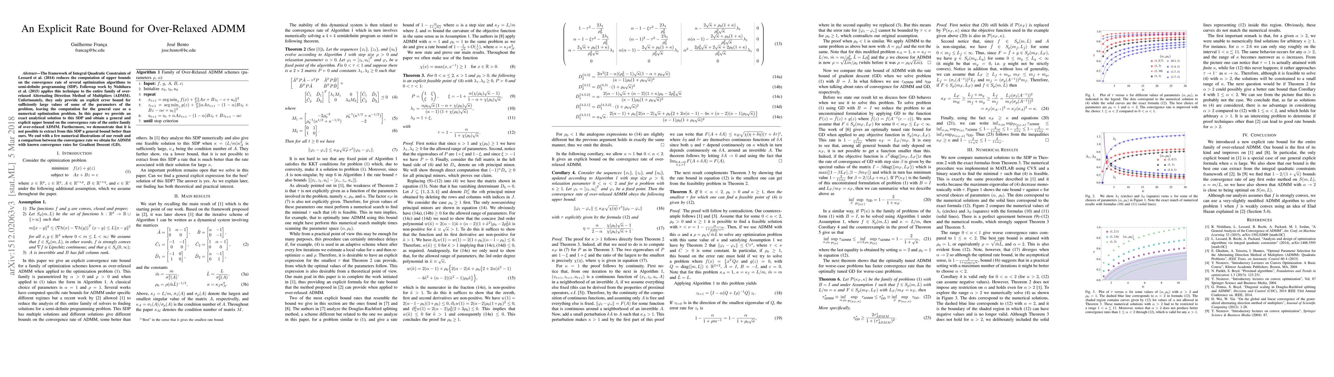 The framework of Integral Quadratic Constraints of Lessard et al. (2014) reduces the computation of upper bounds on the convergence rate of several optimization algorithms to semi-definite programming (SDP). Followup work by Nishihara et al. (2015) applies this technique to the entire family of over-relaxed Alternating Direction Method of Multipliers (ADMM). Unfortunately, they only provide an explicit error bound for sufficiently large values of some of the parameters of the problem, leaving the computation for the general case as a numerical optimization problem. In this paper we provide an exact analytical solution to this SDP and obtain a general and explicit upper bound on the convergence rate of the entire family of over-relaxed ADMM. Furthermore, we demonstrate that it is not possible to extract from this SDP a general bound better than ours. We end with a few numerical illustrations of our result and a comparison between the convergence rate we obtain for the ADMM with known convergence rates for the Gradient Descent.