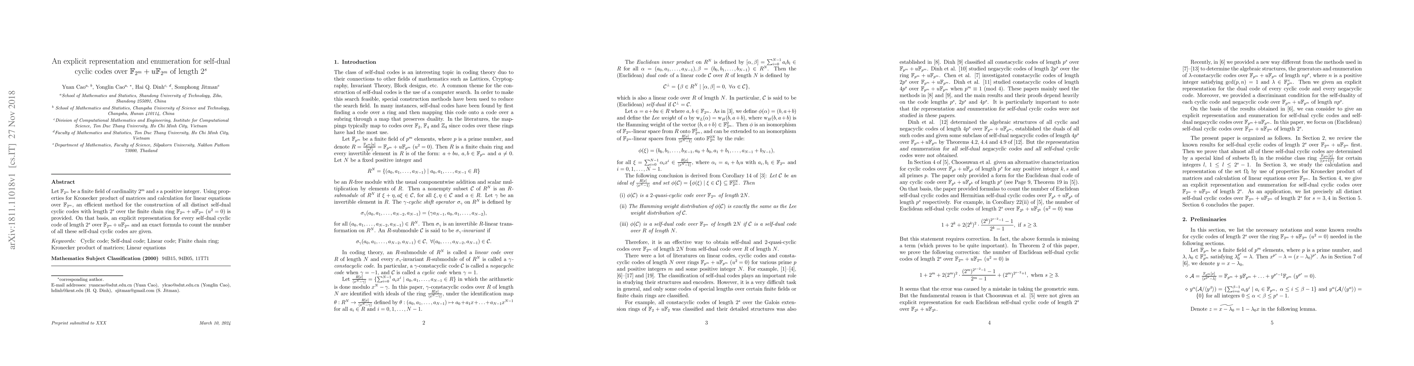 This paper presents an efficient method for constructing all distinct self-dual cyclic codes of length $2^s$ over the finite chain ring $\mathbb{F}_{2^m}+u\mathbb{F}_{2^m}$. It provides an explicit representation and an exact formula for the enumeration of these codes using Kronecker product properties and linear equations over $\mathbb{F}_{2^m}$.