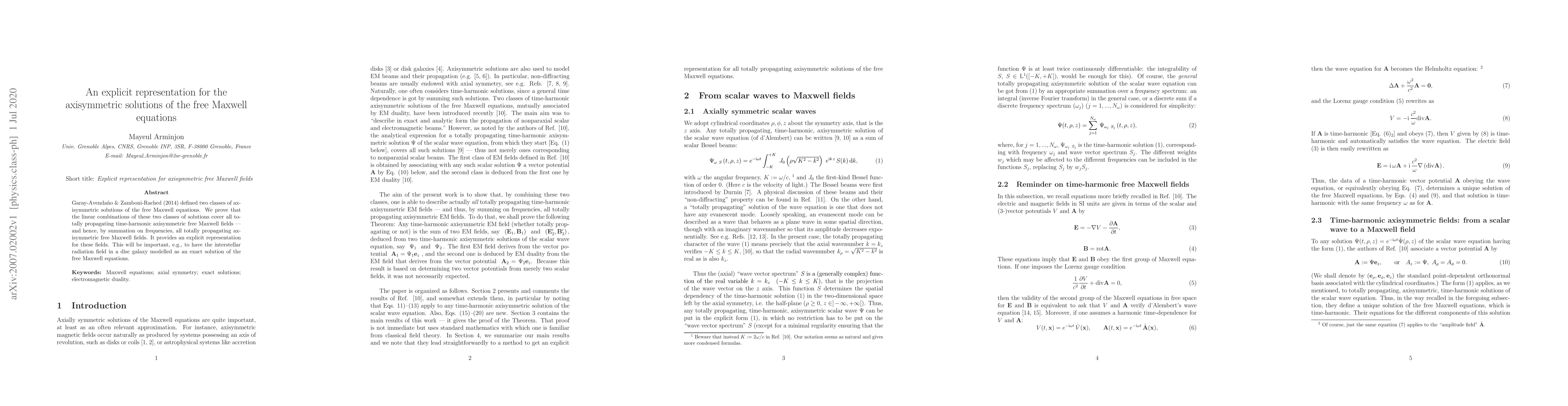 This paper proves that linear combinations of two classes of axisymmetric solutions defined by Garay-Avenda\~no and Zamboni-Rached cover all totally propagating axisymmetric free Maxwell fields, providing an explicit representation. This is significant for modeling interstellar radiation fields in disc galaxies.