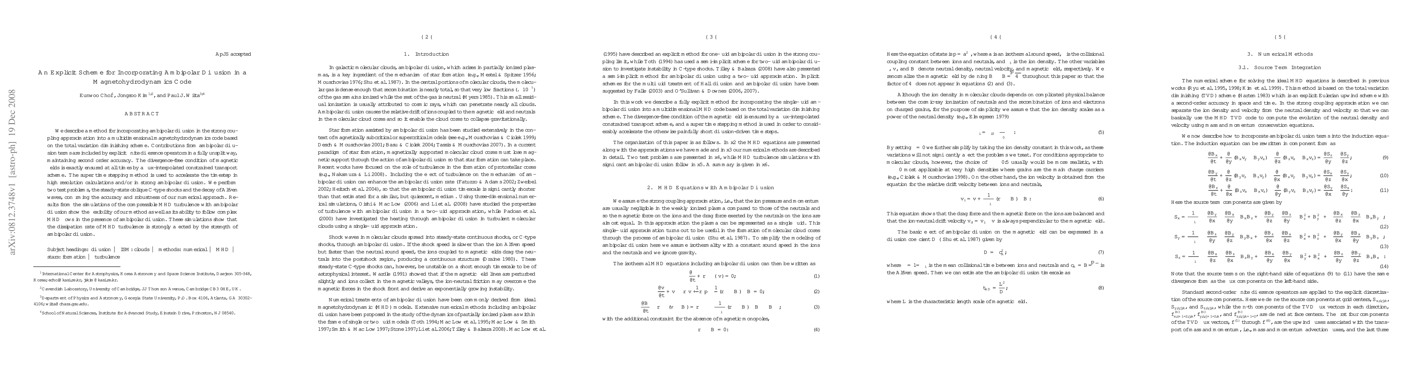This paper presents an explicit scheme for integrating ambipolar diffusion into a multidimensional magnetohydrodynamics (MHD) code, ensuring second-order accuracy and maintaining the divergence-free condition of magnetic fields. The method is validated through simulations of C-type shocks and Alfvén wave decay, demonstrating its accuracy and robustness.