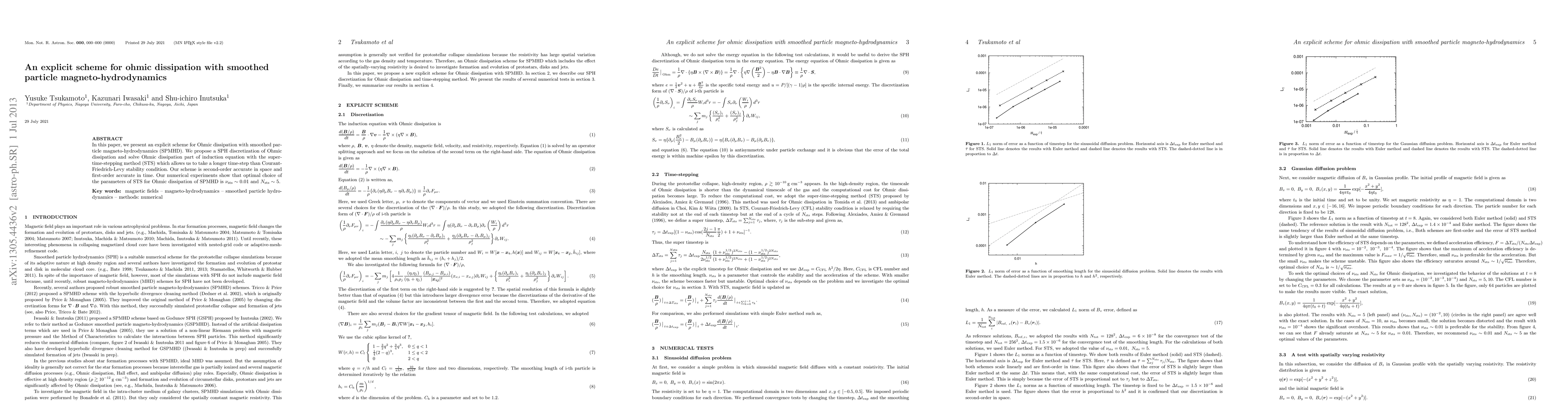 This paper introduces an explicit scheme for Ohmic dissipation in smoothed particle magneto-hydrodynamics (SPMHD) using SPH discretization and the supertime-stepping method (STS). The proposed method is second-order accurate in space and first-order in time, allowing for longer time-steps beyond the Courant-Friedrich-Levy condition.