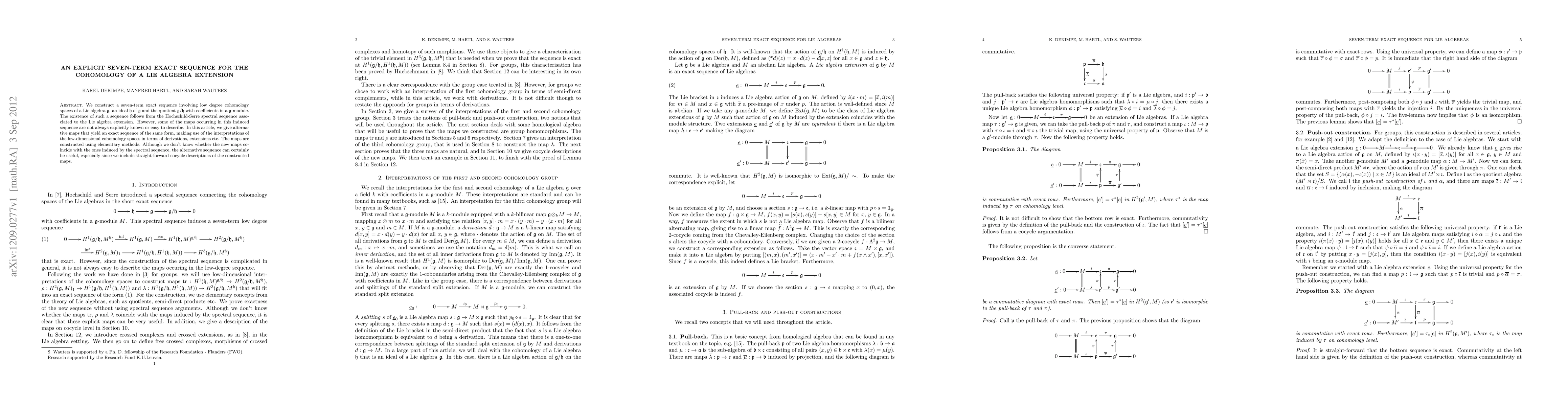 This paper constructs an explicit seven-term exact sequence for the cohomology of a Lie algebra extension, providing alternative, easily described maps that yield an exact sequence, despite the uncertainty of their equivalence to those induced by the Hochschild-Serre spectral sequence.