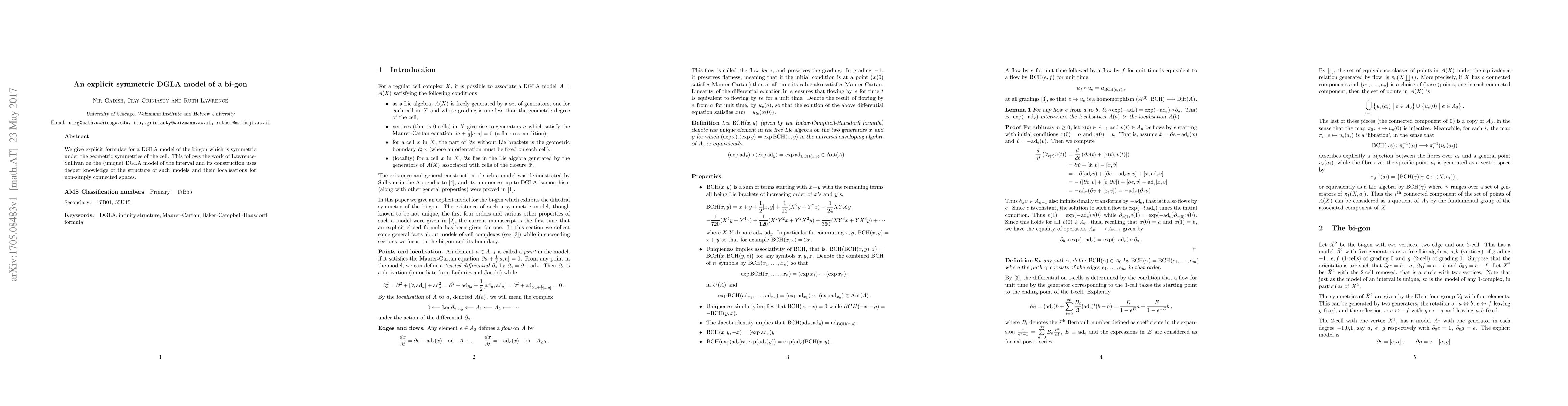 We give explicit formulae for a DGLA model of the bi-gon which is symmetric under the geometric symmetries of the cell. This follows the work of Lawrence-Sullivan on the (unique) DGLA model of the interval and its construction uses deeper knowledge of the structure of such models and their localisations for non-simply connected spaces.