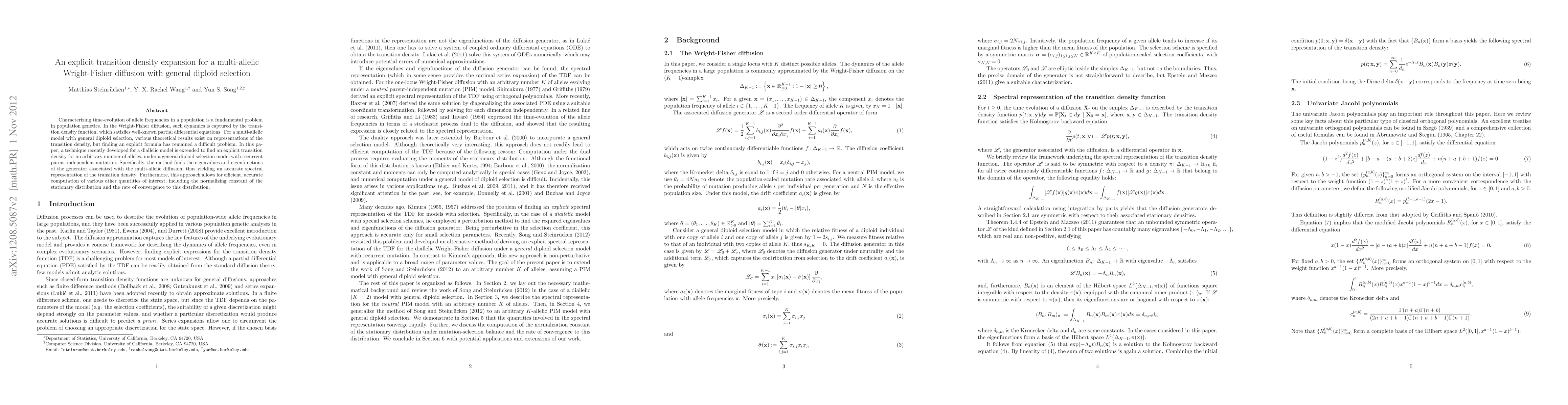 Researchers developed a method to find an explicit transition density formula for time-evolving allele frequencies in populations with multiple alleles and general diploid selection. This allows for efficient computation of various quantities of interest.