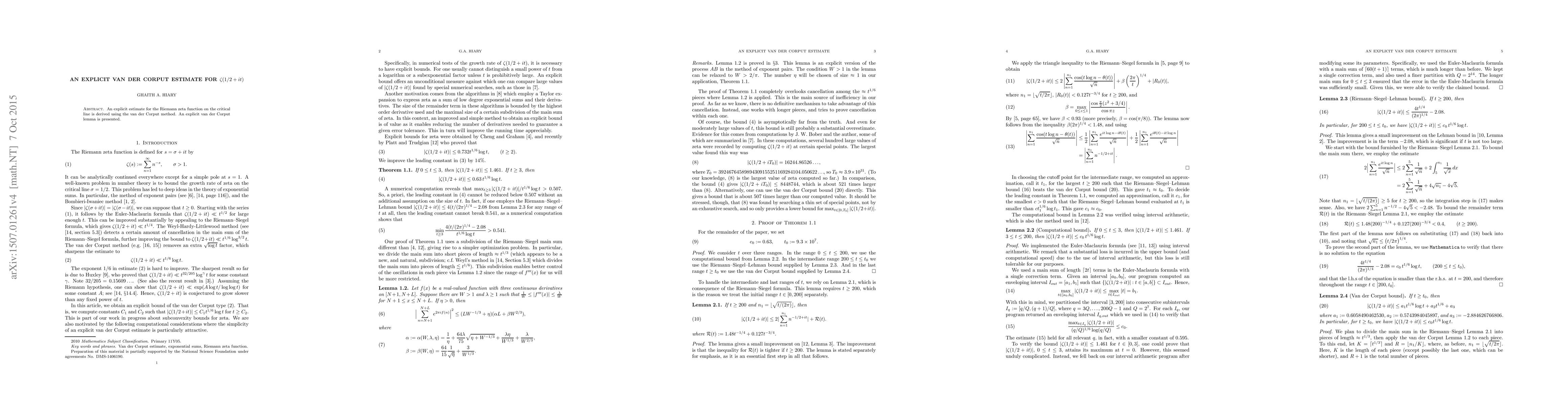 Summary: This paper derives an explicit van der Corput estimate for the Riemann zeta function on the critical line, introducing a new explicit van der Corput lemma to achieve this.