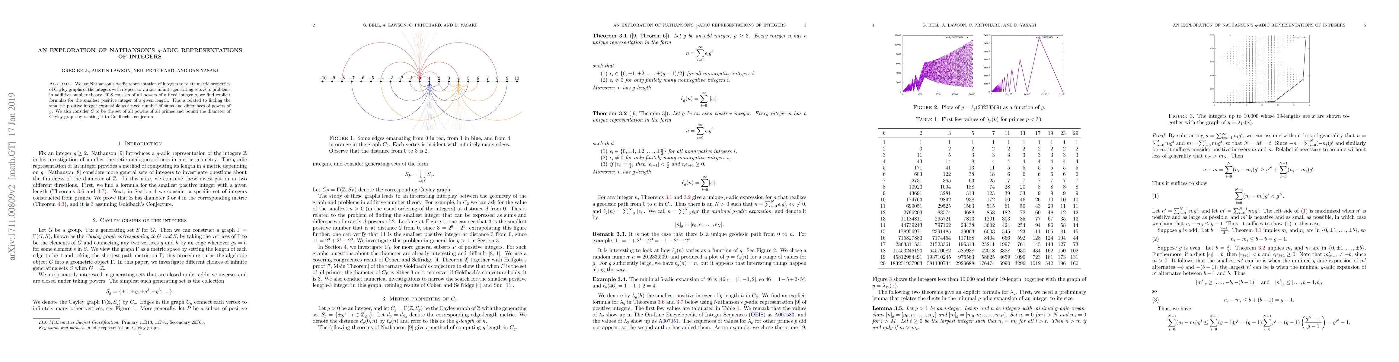 We use Nathanson's $g$-adic representation of integers to relate metric properties of Cayley graphs of the integers with respect to various infinite generating sets $S$ to problems in additive number theory. If $S$ consists of all powers of a fixed integer $g$, we find explicit formulas for the smallest positive integer of a given length. This is related to finding the smallest positive integer expressible as a fixed number of sums and differences of powers of $g$. We also consider $S$ to be the set of all powers of all primes and bound the diameter of Cayley graph by relating it to Goldbach's conjecture.