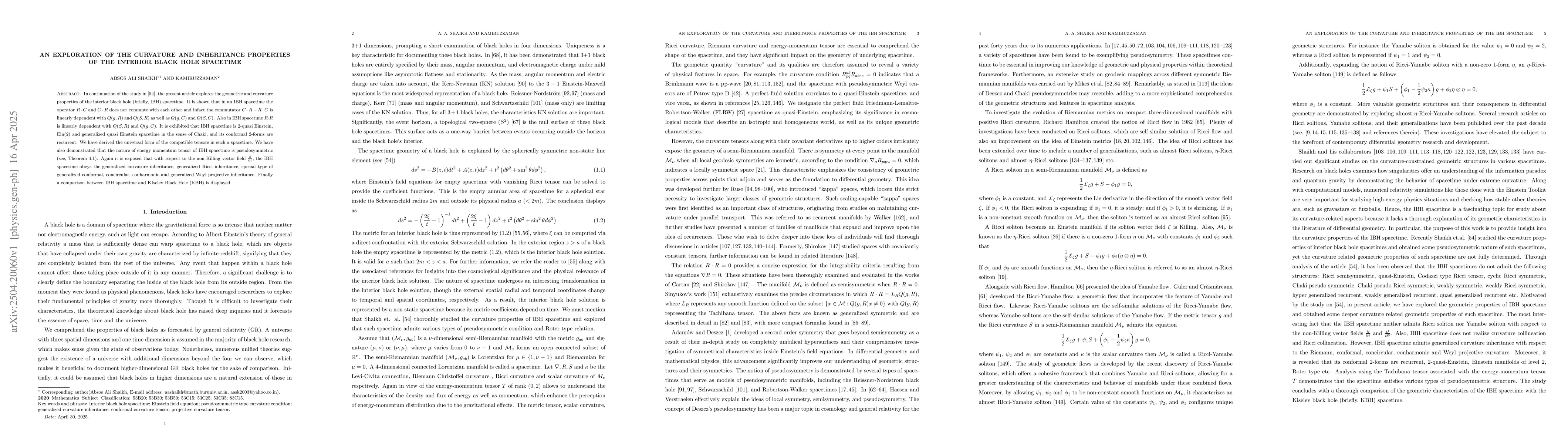 The research methodology is not explicitly detailed in the abstract, but it continues the study from a previous work (SDHK_interior_2020) focusing on geometric and curvature properties of the interior black hole (IBH) spacetime.