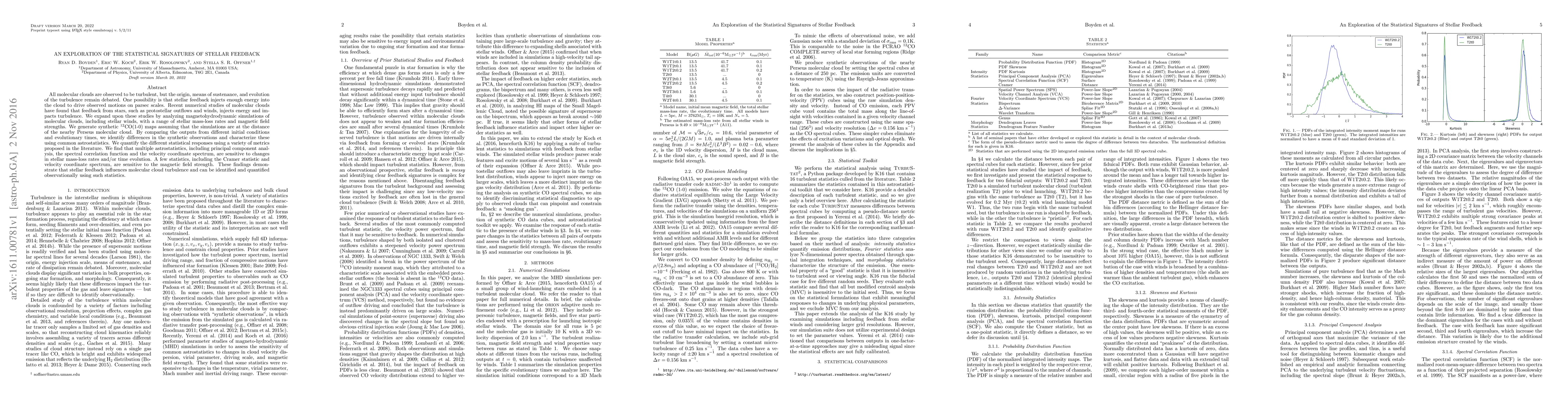 All molecular clouds are observed to be turbulent, but the origin, means of sustenance, and evolution of the turbulence remain debated. One possibility is that stellar feedback injects enough energy into the cloud to drive observed motions on parsec scales. Recent numerical studies of molecular clouds have found that feedback from stars, such as protostellar outflows and winds, injects energy and impacts turbulence. We expand upon these studies by analyzing magnetohydrodynamic simulations of molecular clouds, including stellar winds, with a range of stellar mass-loss rates and magnetic field strengths. We generate synthetic $^{12}$CO(1-0) maps assuming that the simulations are at the distance of the nearby Perseus molecular cloud. By comparing the outputs from different initial conditions and evolutionary times, we identify differences in the synthetic observations and characterize these using common astrostatistics. We quantify the different statistical responses using a variety of metrics proposed in the literature. We find that multiple astrostatistics, including principal component analysis, the spectral correlation function and the velocity coordinate spectrum, are sensitive to changes in stellar mass-loss rates and/or time evolution. A few statistics, including the Cramer statistic and velocity coordinate spectrum, are sensitive to the magnetic field strength. These findings demonstrate that stellar feedback influences molecular cloud turbulence and can be identified and quantified observationally using such statistics.