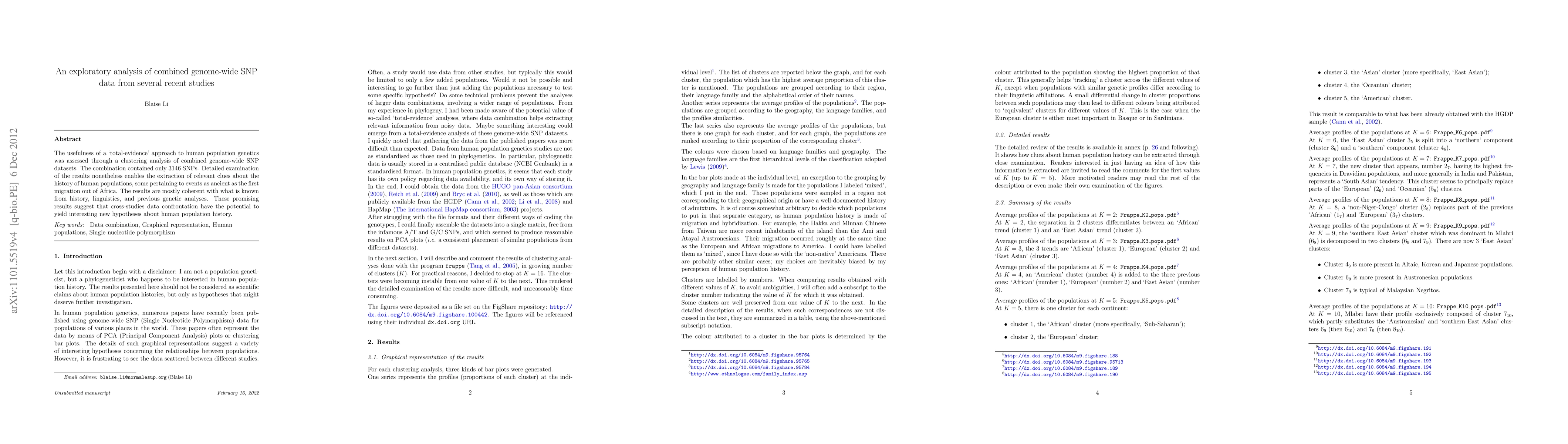 The usefulness of a `total-evidence' approach to human population genetics was assessed through a clustering analysis of combined genome-wide SNP datasets. The combination contained only 3146 SNPs. Detailed examination of the results nonetheless enables the extraction of relevant clues about the history of human populations, some pertaining to events as ancient as the first migration out of Africa. The results are mostly coherent with what is known from history, linguistics, and previous genetic analyses. These promising results suggest that cross-studies data confrontation have the potential to yield interesting new hypotheses about human population history.