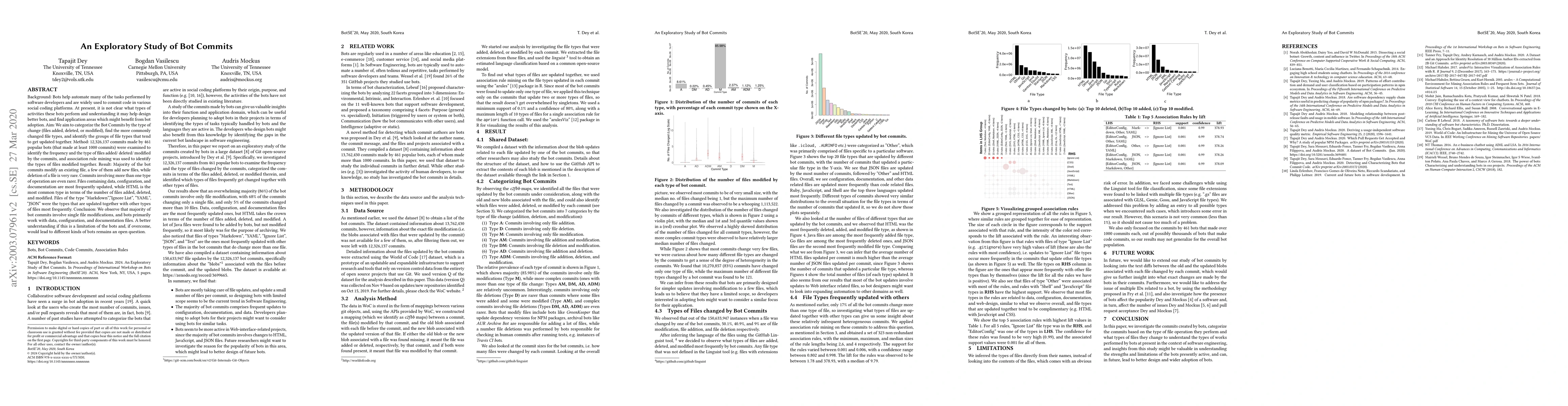 Researchers analyzed 12 million bot commits to find common file types updated together, discovering that most bots focus on data, configuration, and documentation files with HTML being the most frequently added, deleted, and modified type.