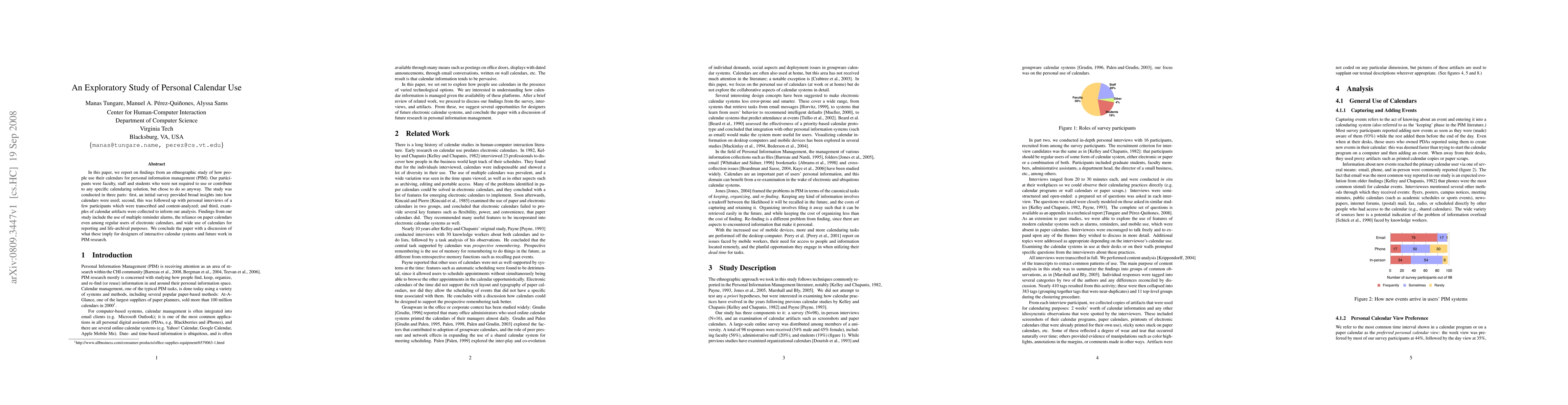 This ethnographic study explores how faculty, staff, and students use calendars for personal information management, revealing diverse practices including multiple alarm usage, reliance on paper calendars, and calendar use for reporting and archival purposes. The findings suggest implications for interactive calendar system design and future personal information management research.