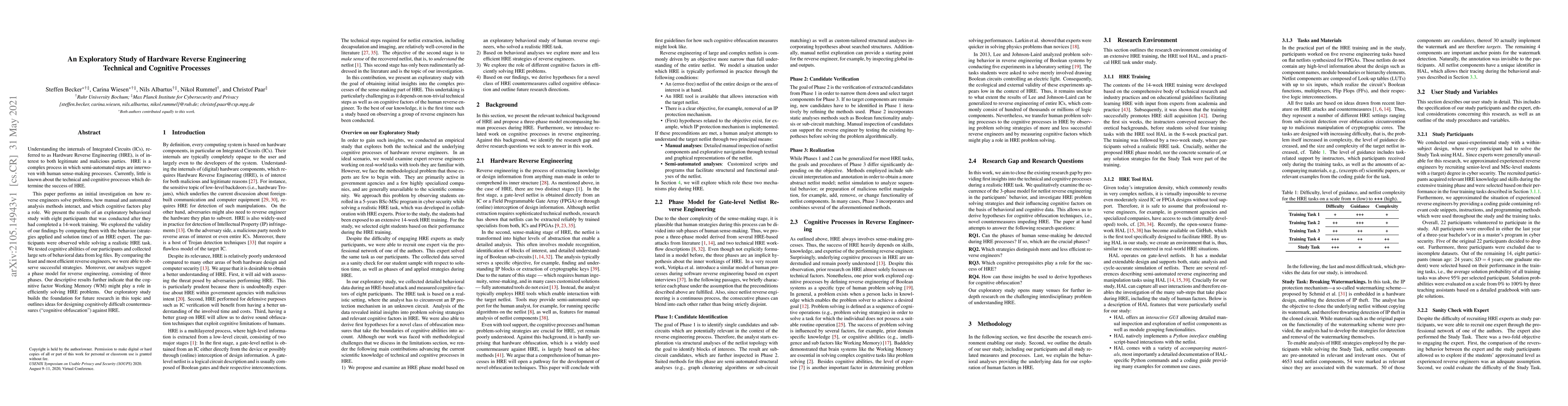 This paper investigates the technical and cognitive processes involved in Hardware Reverse Engineering (HRE) through an exploratory study of eight trained participants. The study reveals successful strategies and suggests a three-phase model for HRE, highlighting the potential role of Working Memory in problem-solving efficiency.
