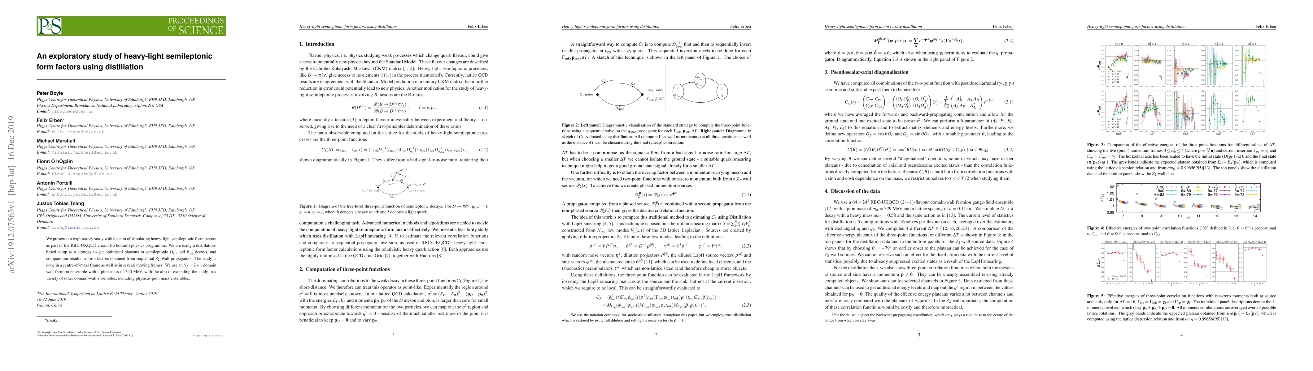 This study explores heavy-light semileptonic form factors using a distillation-based approach within the RBC-UKQCD charm physics programme, comparing results to those from $Z_2$-Wall propagators across various frames. The research employs an $N_f=2+1$ domain wall fermion ensemble with a pion mass of 340 MeV, with plans to extend to physical-pion mass ensembles.