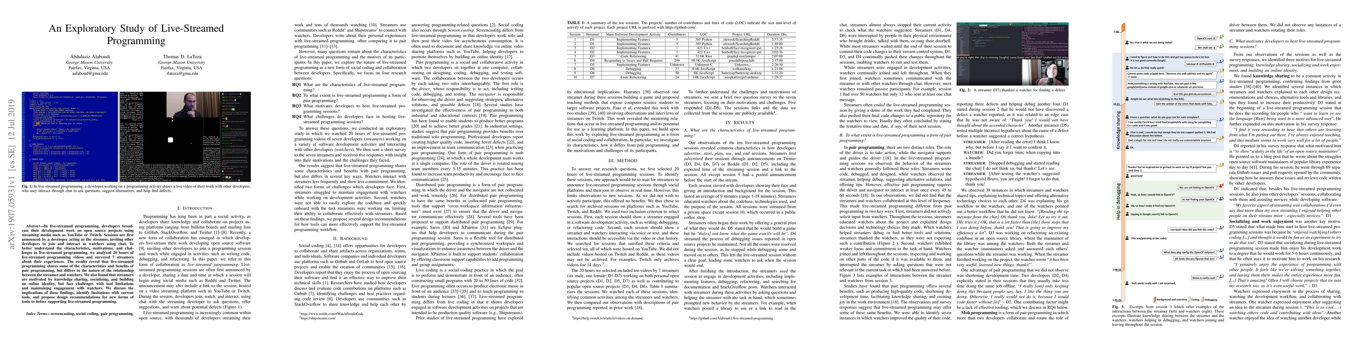 This study explores live-streamed programming, comparing it to pair programming and identifying motivations and challenges of streamers. Findings suggest streamers are motivated by knowledge sharing and socializing but face tool limitations and engagement issues, prompting design recommendations for improved tools.