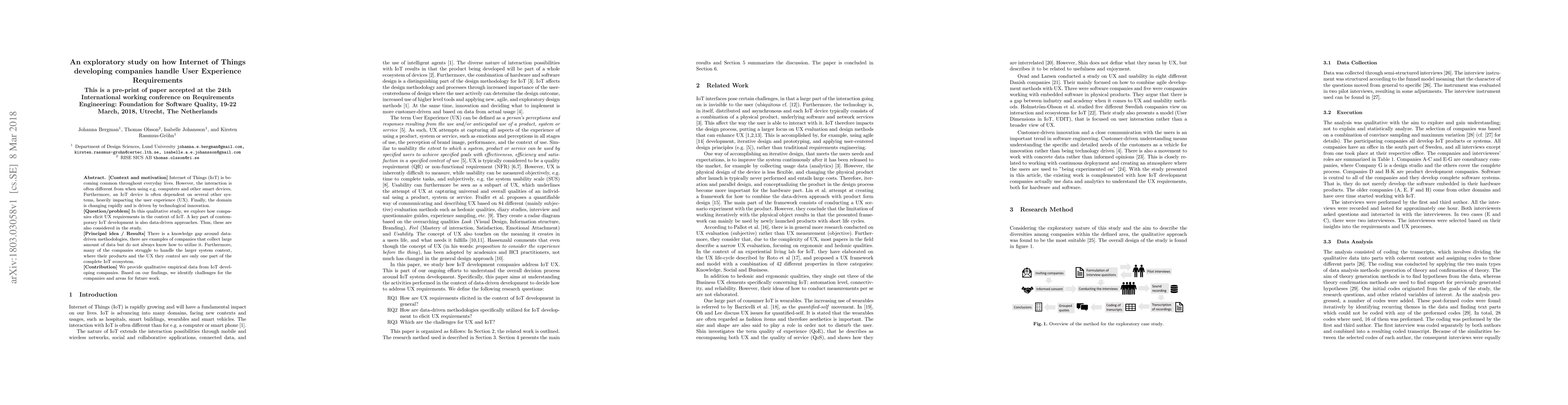 This study explores how IoT companies manage user experience requirements, revealing challenges in utilizing data-driven methodologies and understanding the broader IoT ecosystem context.