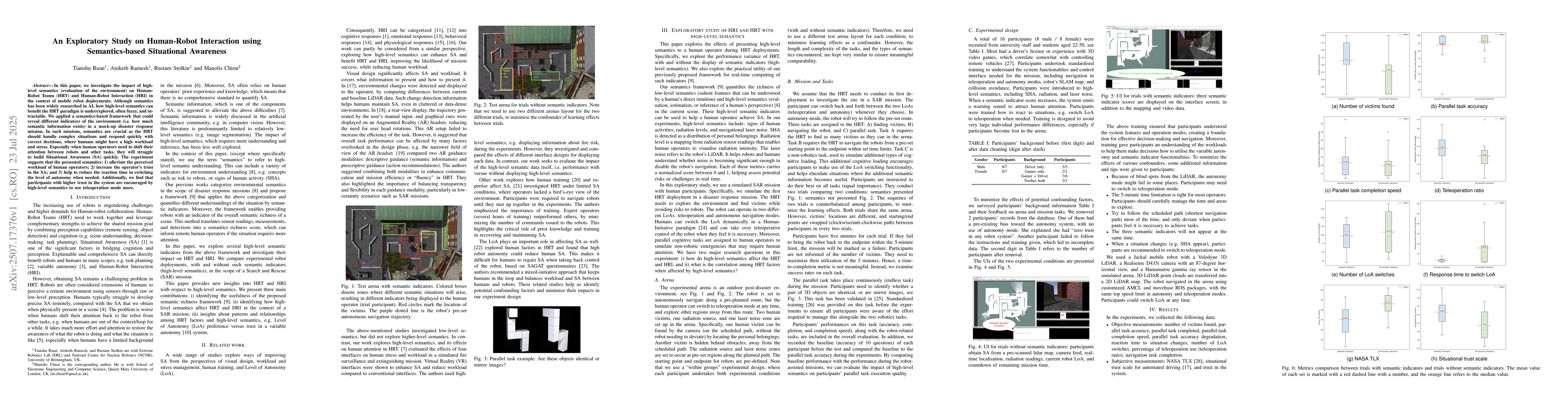 In this paper, we investigate the impact of high-level semantics (evaluation of the environment) on Human-Robot Teams (HRT) and Human-Robot Interaction (HRI) in the context of mobile robot deployments. Although semantics has been widely researched in AI, how high-level semantics can benefit the HRT paradigm is underexplored, often fuzzy, and intractable. We applied a semantics-based framework that could reveal different indicators of the environment (i.e. how much semantic information exists) in a mock-up disaster response mission. In such missions, semantics are crucial as the HRT should handle complex situations and respond quickly with correct decisions, where humans might have a high workload and stress. Especially when human operators need to shift their attention between robots and other tasks, they will struggle to build Situational Awareness (SA) quickly. The experiment suggests that the presented semantics: 1) alleviate the perceived workload of human operators; 2) increase the operator's trust in the SA; and 3) help to reduce the reaction time in switching the level of autonomy when needed. Additionally, we find that participants with higher trust in the system are encouraged by high-level semantics to use teleoperation mode more.