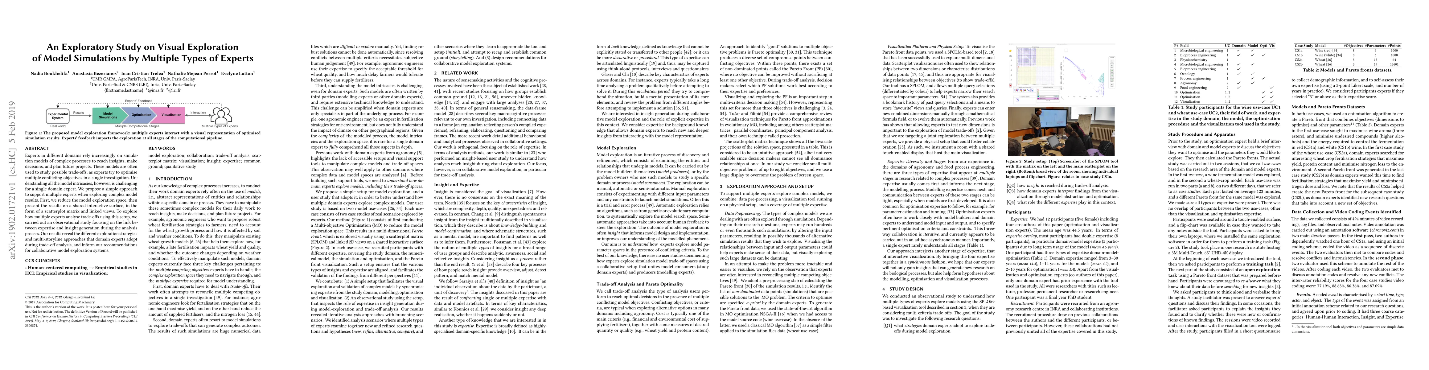 This study investigates how multiple domain experts collaboratively explore complex simulation models using a shared interactive visualization tool. The research reveals distinct exploration strategies and multi-storyline approaches adopted by experts, providing insights for designing effective collaborative model exploration systems.