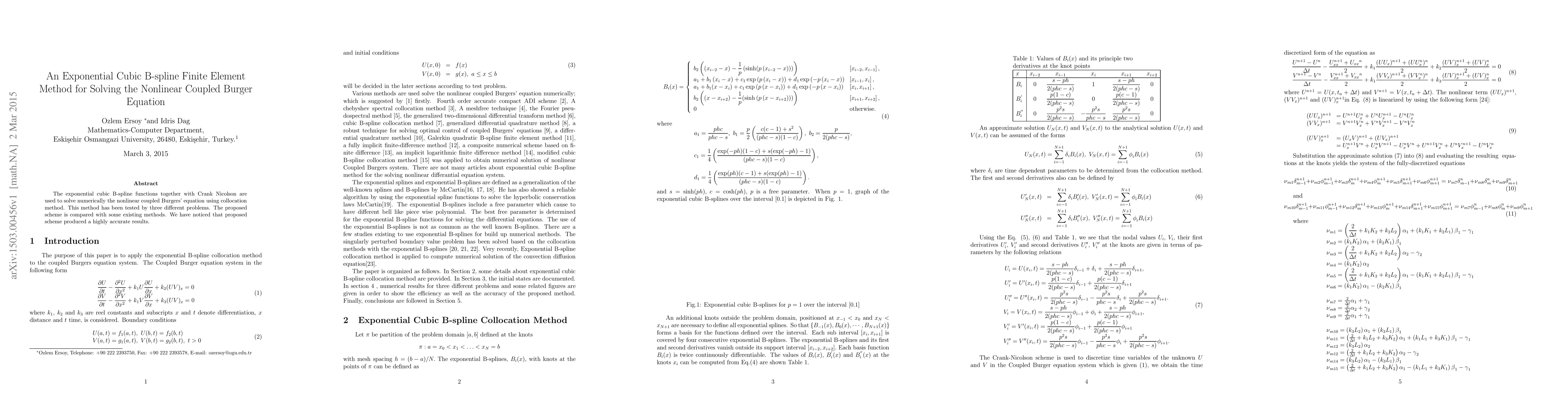 Summary: The paper proposes an exponential cubic B-spline finite element method combined with the Crank-Nicolson scheme for solving the nonlinear coupled Burgers' equation using collocation. The method demonstrates high accuracy compared to existing techniques, as validated by three test problems.