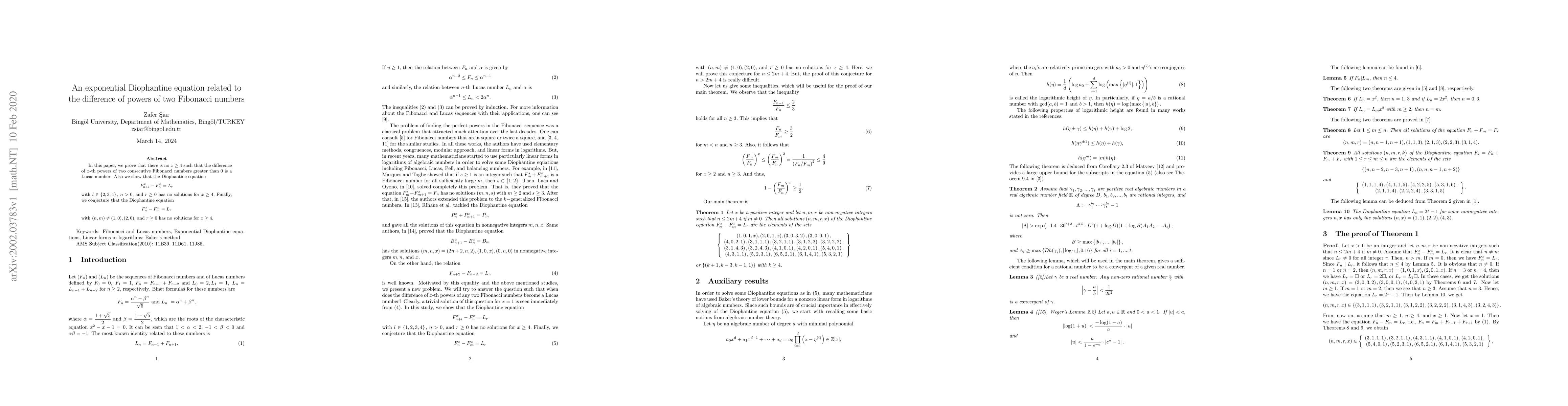 In this paper, we prove that there is no x>=4 such that the difference of x-th powers of two consecutive Fibonacci numbers greater than 0 is a Lucas number.