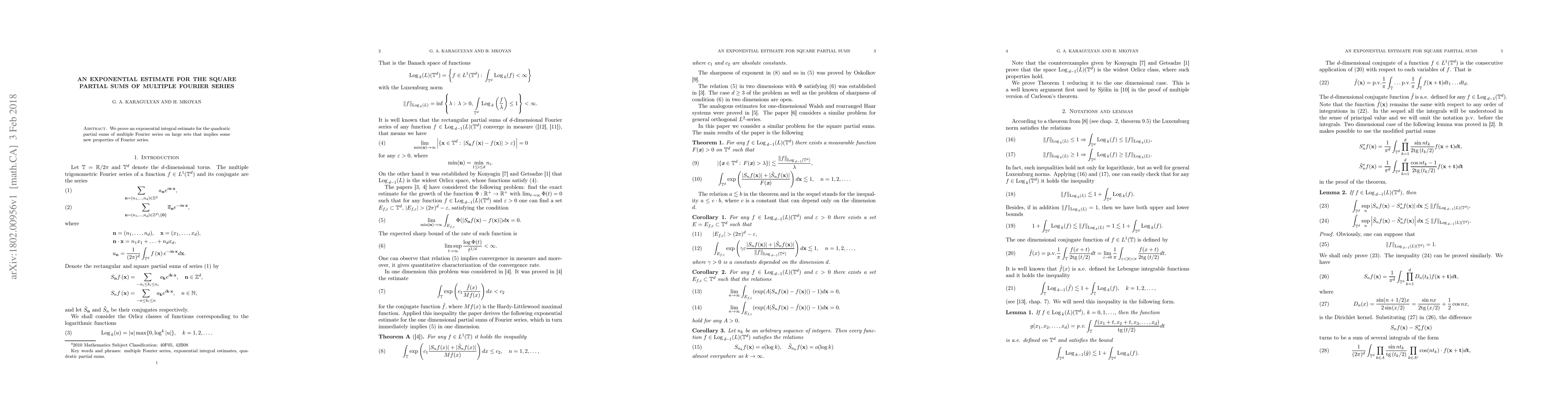 Summary: This paper establishes an exponential integral estimate for the quadratic partial sums of multiple Fourier series, revealing new properties of these series on large sets. The findings contribute to a deeper understanding of the behavior of multiple Fourier series.