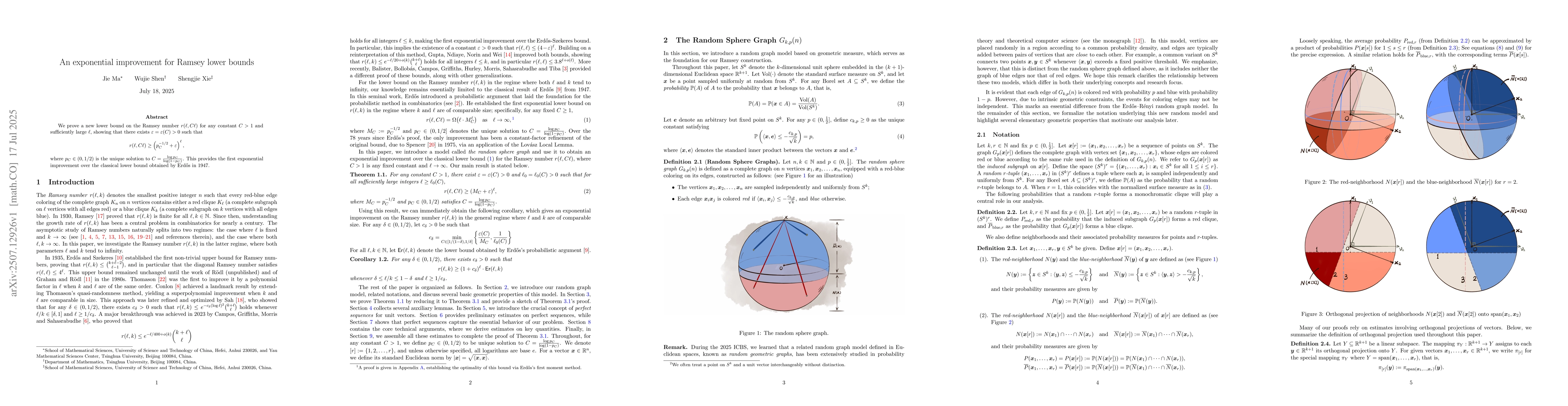We prove a new lower bound on the Ramsey number $r(\ell, C\ell)$ for any constant $C > 1$ and sufficiently large $\ell$, showing that there exists $\varepsilon=\varepsilon(C)> 0$ such that \[ r(\ell, C\ell) \geq \left(p_C^{-1/2} + \varepsilon\right)^\ell, \] where $p_C \in (0, 1/2)$ is the unique solution to $C = \frac{\log p_C}{\log(1 - p_C)}$. This provides the first exponential improvement over the classical lower bound obtained by Erd\H{o}s in 1947.