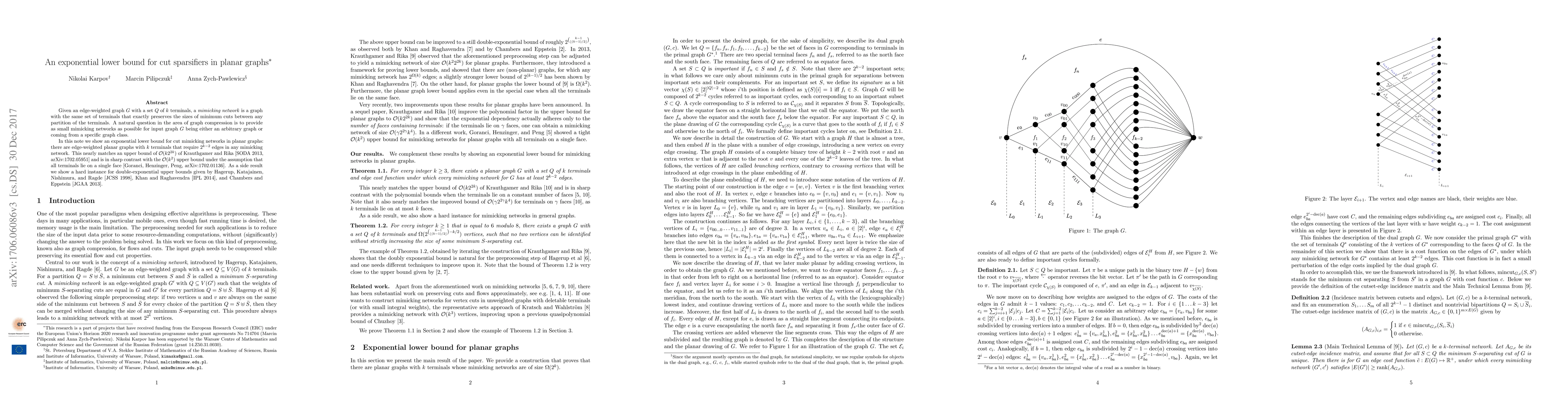 This paper establishes an exponential lower bound for cut sparsifiers in planar graphs, showing that some edge-weighted planar graphs with terminals require a large number of edges to mimic the minimum cuts between any partition of the terminals.
