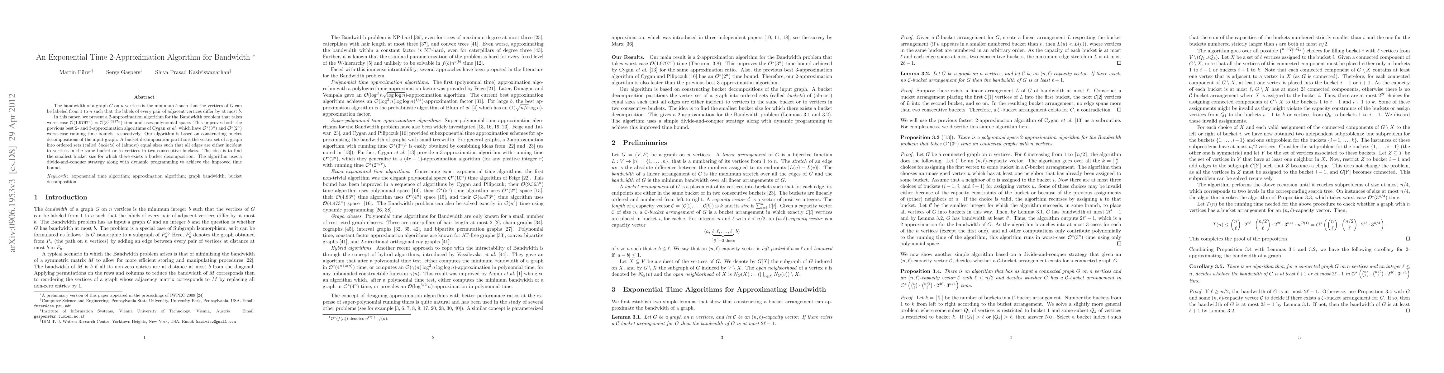This paper presents a 2-approximation algorithm for bandwidth that improves on previous algorithms with O(3^n) and O(2^n) time bounds, achieving an improved worst-case time bound of O(1.9797^n). The algorithm uses bucket decompositions to achieve this result.