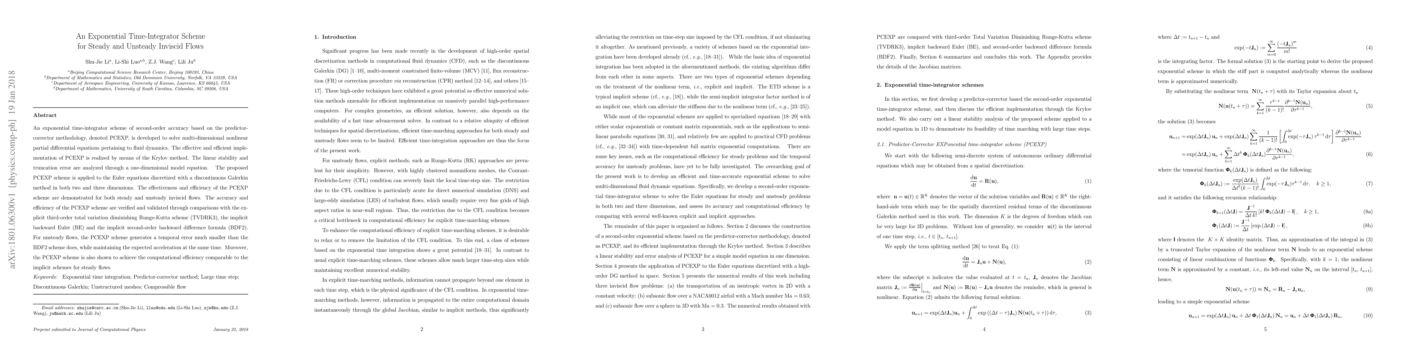 This paper introduces a second-order exponential time-integrator scheme, PCEXP, for solving fluid dynamics equations, demonstrating its effectiveness for both steady and unsteady inviscid flows. The scheme is efficient and achieves better temporal accuracy compared to implicit methods, while maintaining computational efficiency.