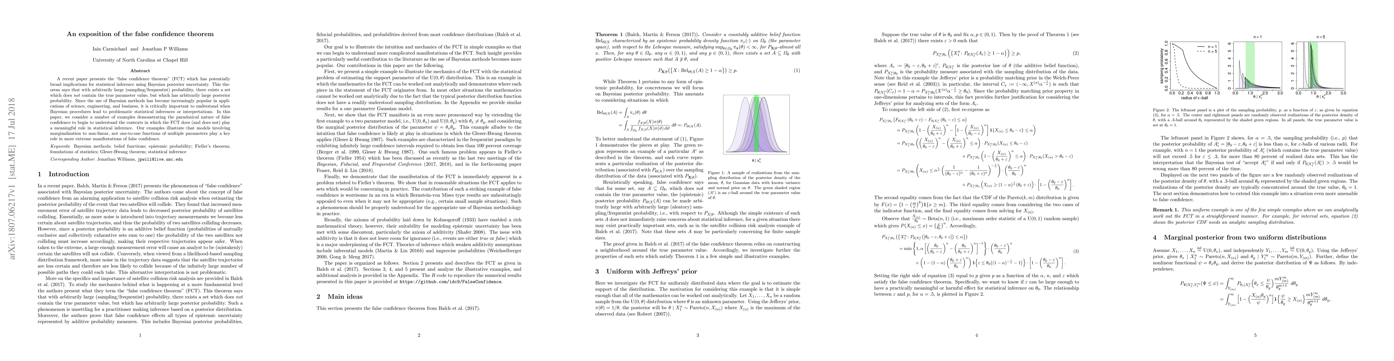 A recent paper explores the false confidence theorem, which shows that even with high posterior probability, a model may not contain the true parameter value, highlighting potential issues in Bayesian statistical inference. The paper provides examples to illustrate when this phenomenon occurs and its implications for statistical analysis.