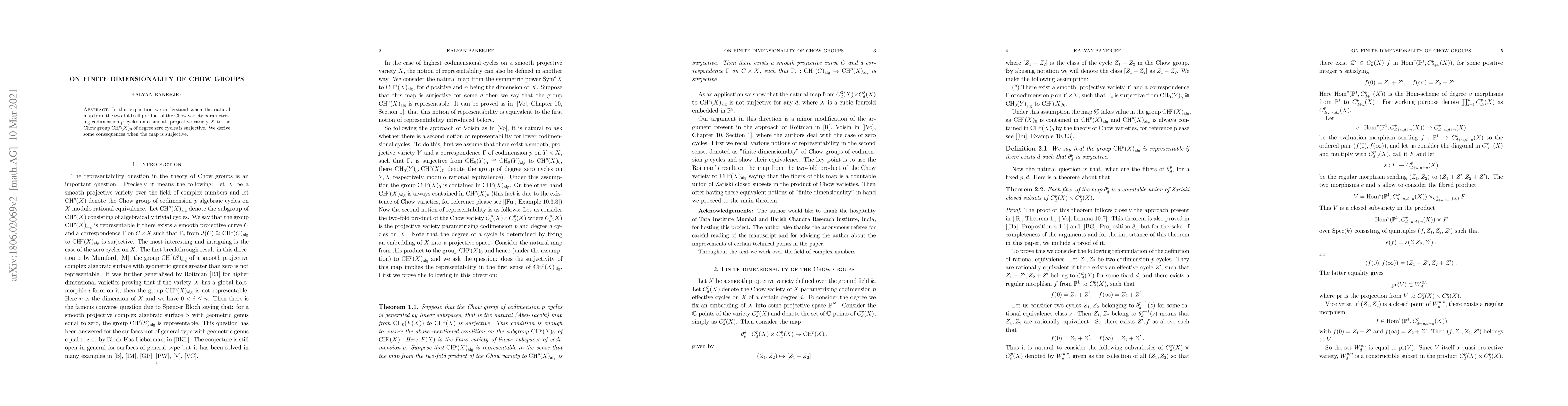 In this exposition we understand when the natural map from the Chow variety parametrizing codimension $p$ cycles on a smooth projective variety $X$ to the Chow group $\CH^p(X)$ is surjective. We derive some consequences when the map is surjective.