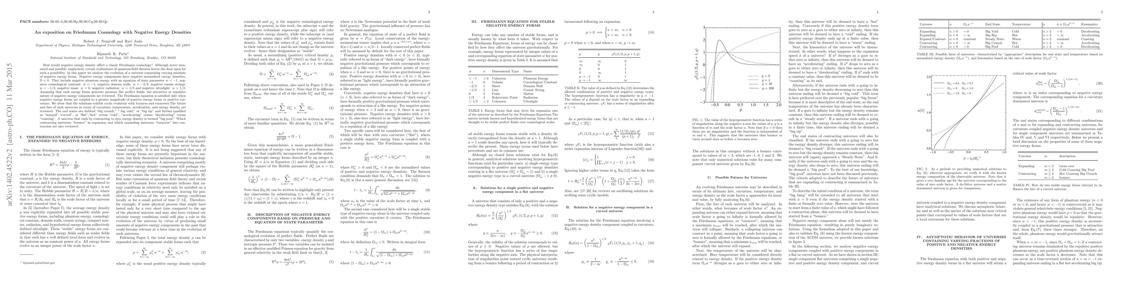 This paper explores the implications of negative energy densities in Friedmann cosmology, examining various forms of negative energy with different equation of state parameters. It finds that such universes can exhibit cyclic evolution, leading to diverse end states like Big Crunch, Big Void, or Big Rip, characterized by terms such as "Warped", "Flat", "Hot", or "Cold".